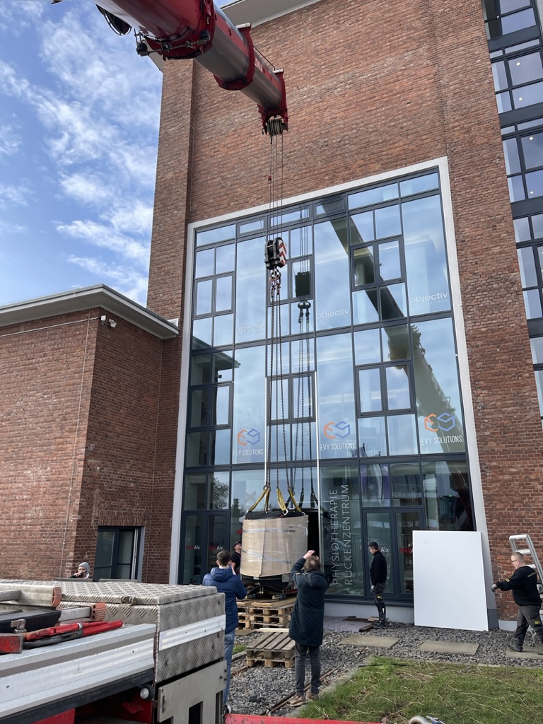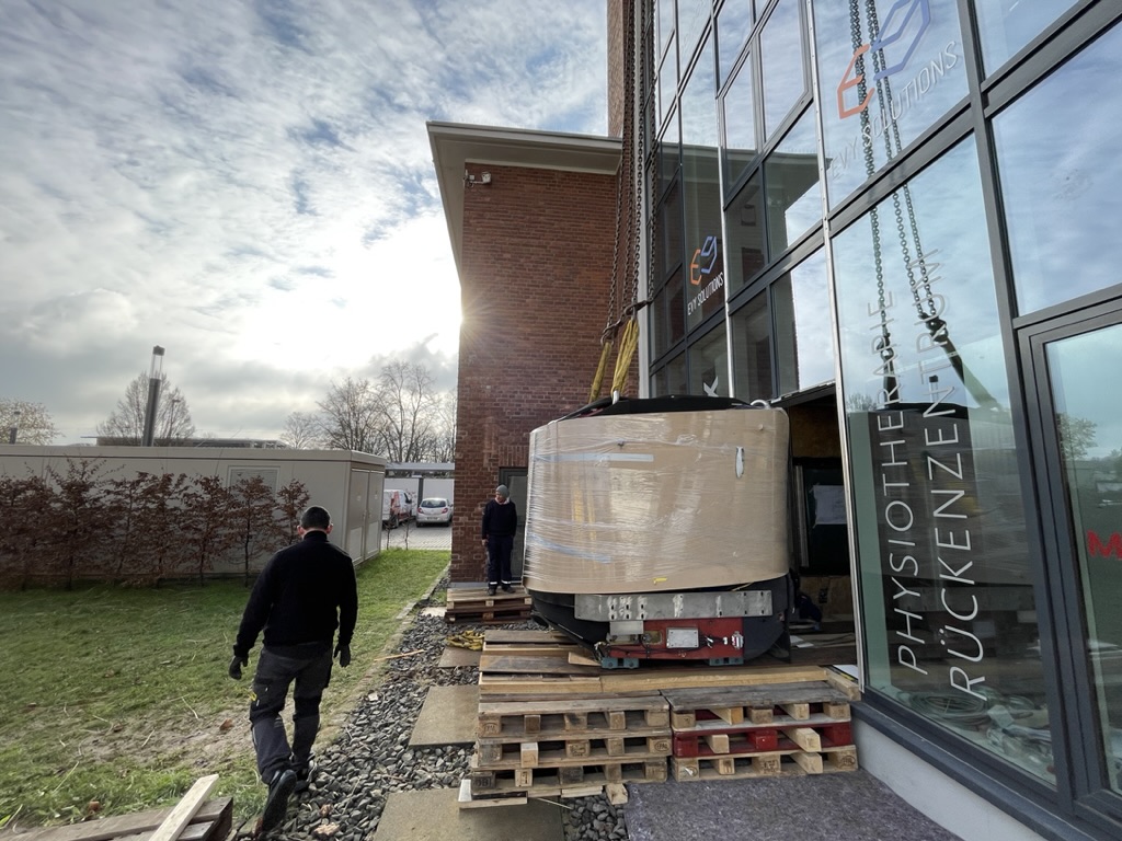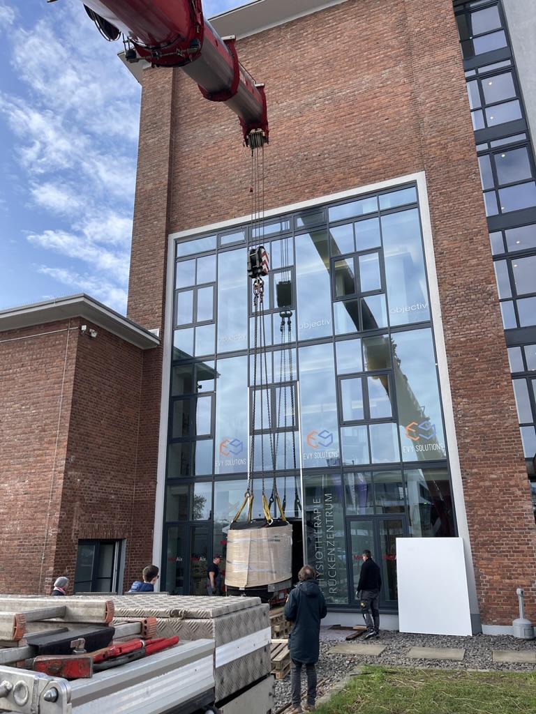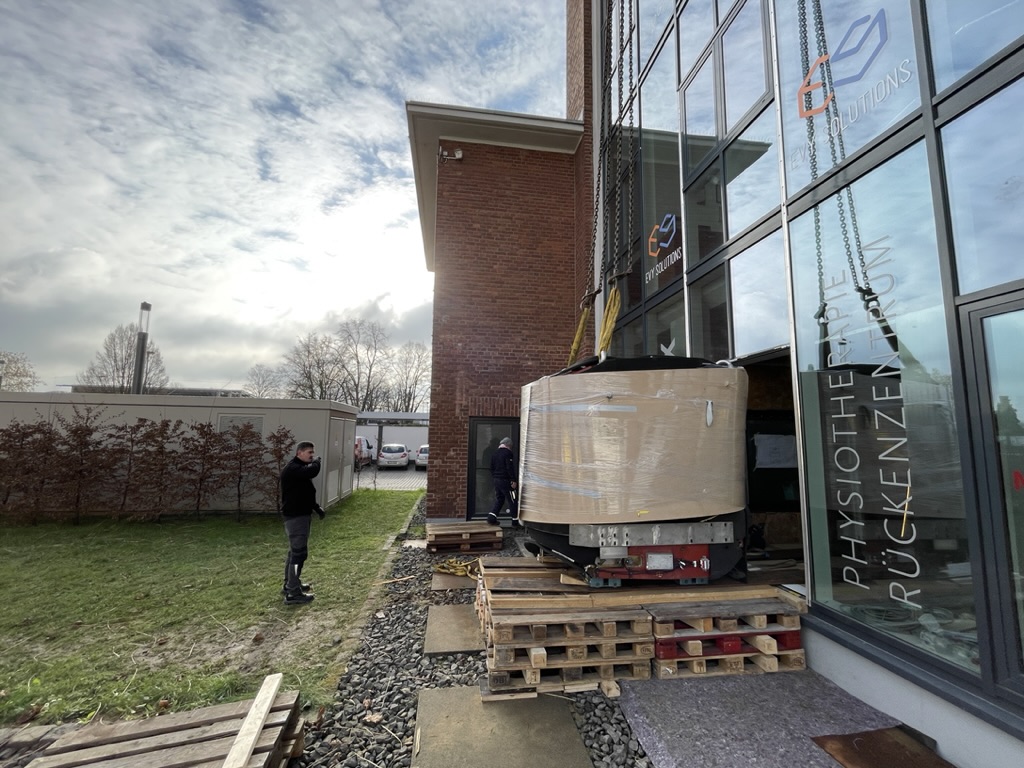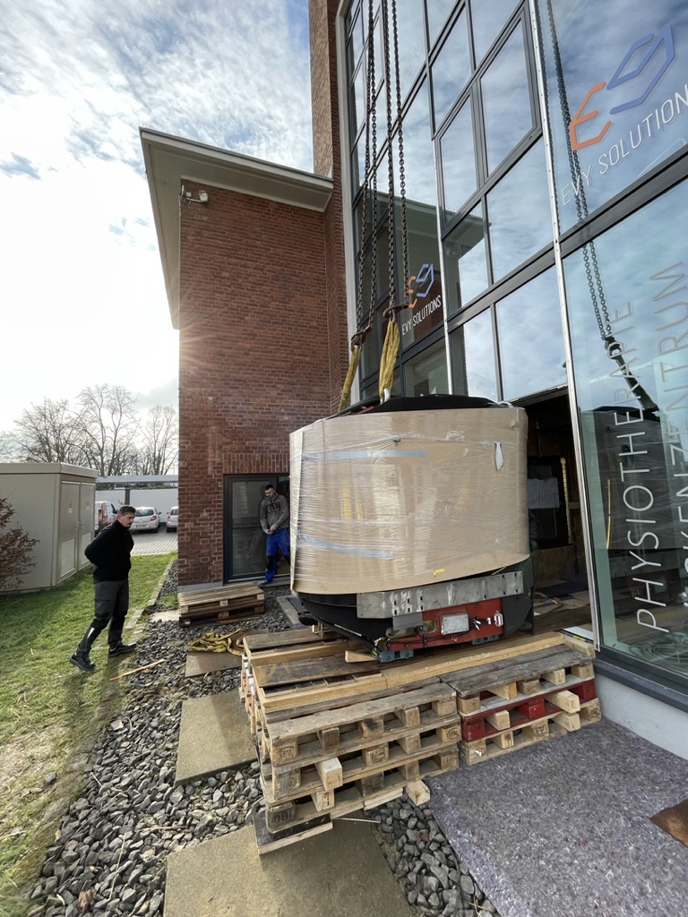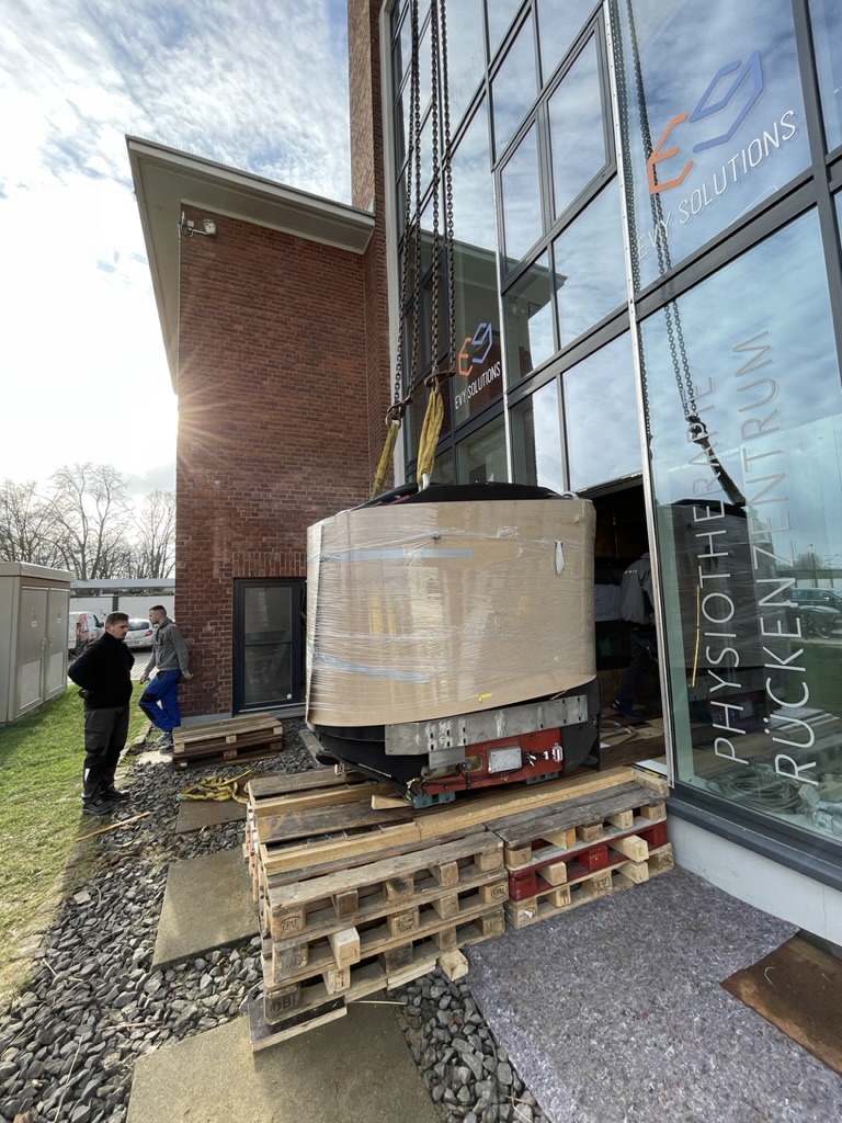 Unsere neu gegründete Greenscan Köln GmbH hat ein innovatives MRT-Gerät, welches zur medizinischen Diagnostik eingesetzt wird, in die Räumlichkeiten im Erdgeschoss des Heizwerks des LESKAN Parks einbringen lassen. Dabei handelt es sich um ein neuartiges, nachhaltiges und patientenfreundliches Konzept: