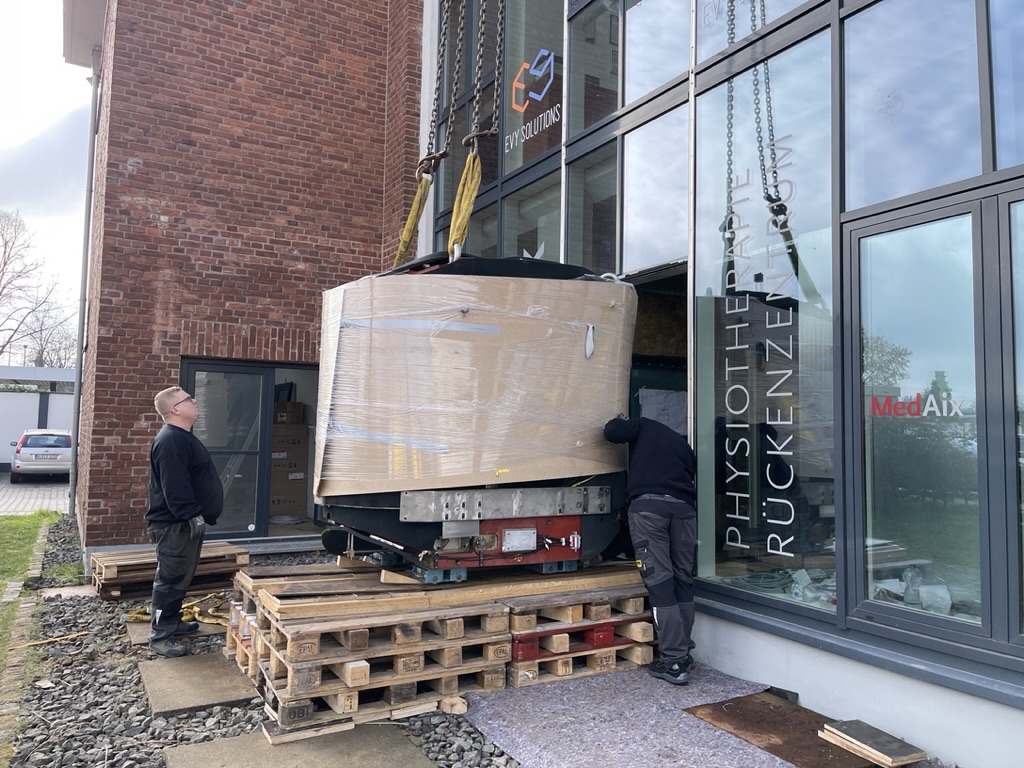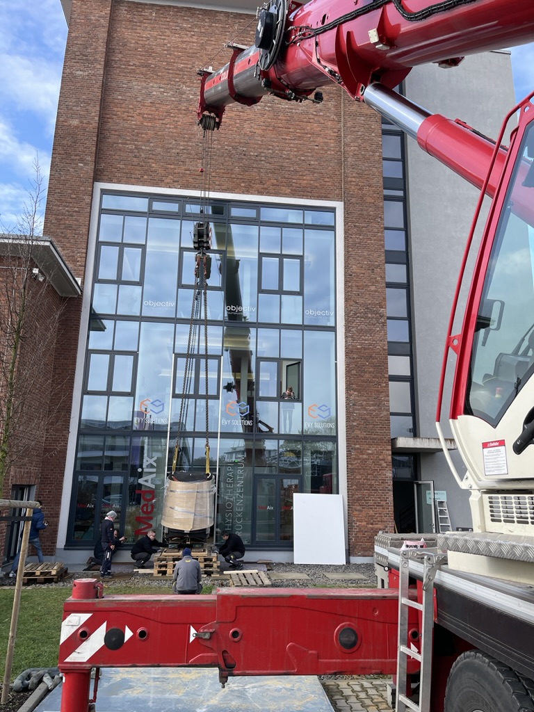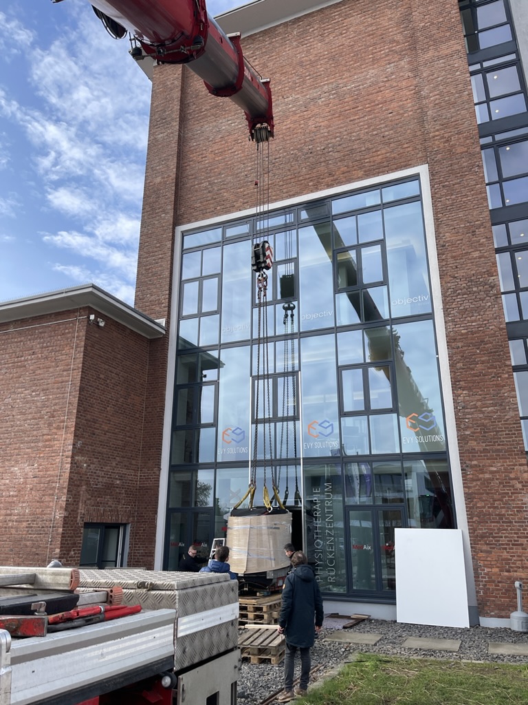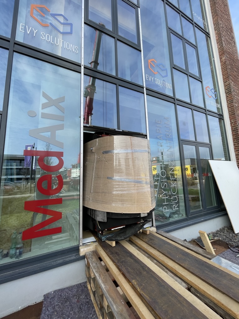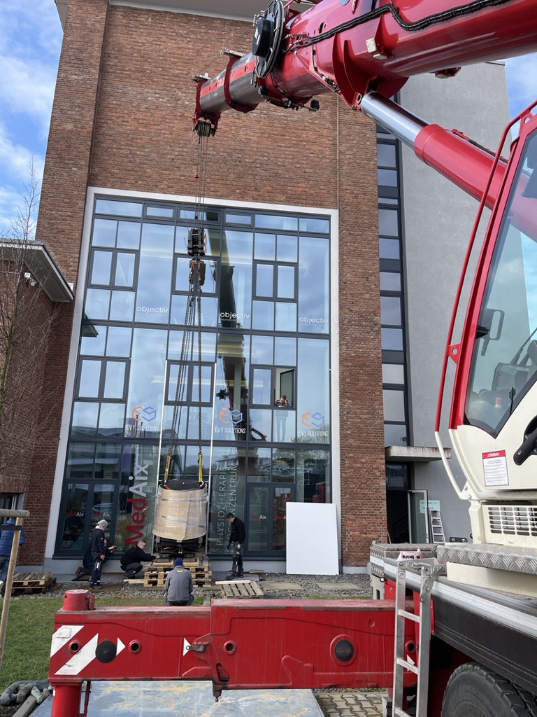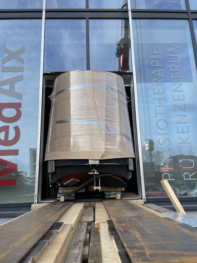 Unsere neu gegründete Greenscan Köln GmbH hat ein innovatives MRT-Gerät, welches zur medizinischen Diagnostik eingesetzt wird, in die Räumlichkeiten im Erdgeschoss des Heizwerks des LESKAN Parks einbringen lassen. Dabei handelt es sich um ein neuartiges, nachhaltiges und patientenfreundliches Konzept: