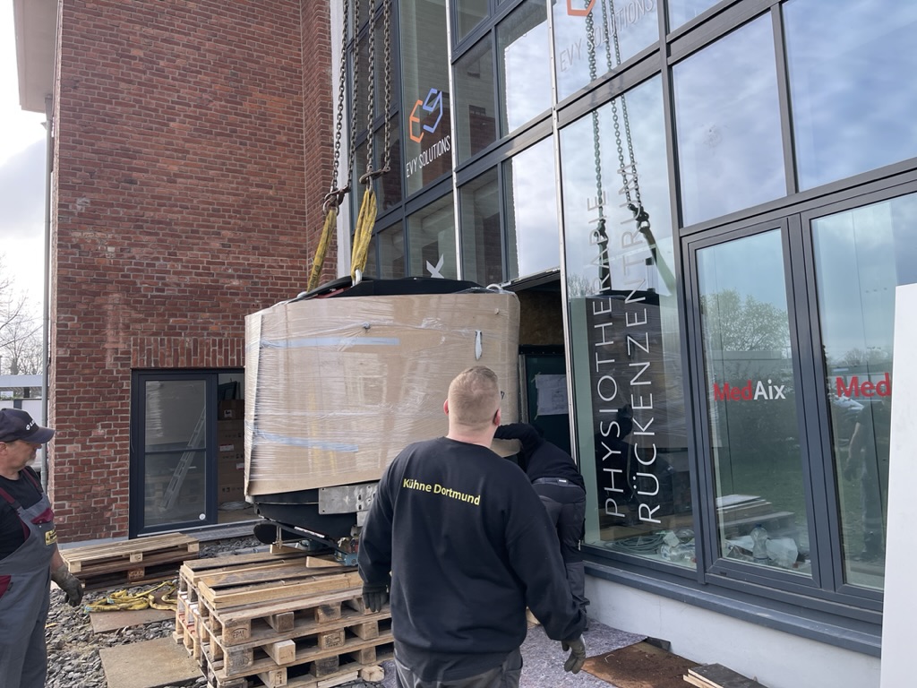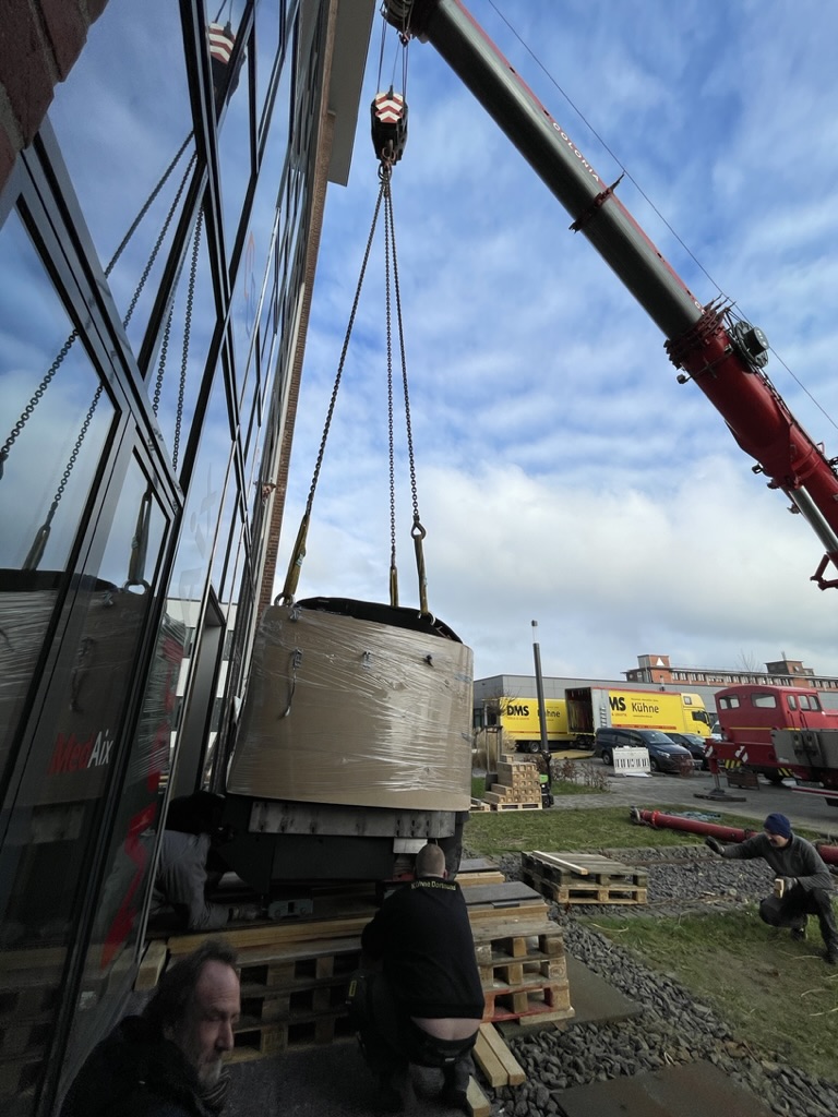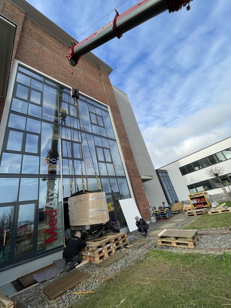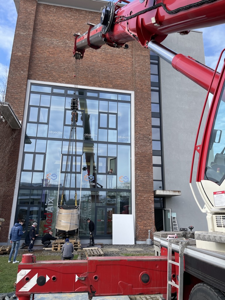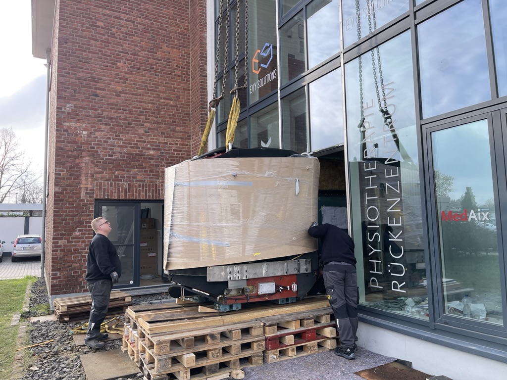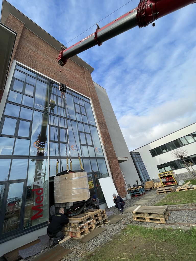 Unsere neu gegründete Greenscan Köln GmbH hat ein innovatives MRT-Gerät, welches zur medizinischen Diagnostik eingesetzt wird, in die Räumlichkeiten im Erdgeschoss des Heizwerks des LESKAN Parks einbringen lassen. Dabei handelt es sich um ein neuartiges, nachhaltiges und patientenfreundliches Konzept: